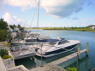 10 February. 82F. Nice day but wind still up. Pushed crew for an early departure. Indeed, a rough downwind ride until Carlisle Bay. 25 knots on our stern, surfing down some 18 foot closely set waves. A good workout at the helm. It eased off on the leeward coast of the island. Picked up a mooring at Jolly Harbor; Sheila served up a big breakfast, crew packed up. Gene and his helper met us at the fuel dock to bring Tardis to a slip. Post cruise lunch next to the airport at the Sticky Wicket. The restaurant and associated Antigua Athletics Club belonged to disgraced Texan investor, Allen Stanford. His alleged crime, " a massive ponzi-scheme". The (surprise surprise) adjoining Stanford Cricket Ground is much beloved. It seems he had to do something with the money, was considered (by some) a local philanthropist. Did make for interesting conversation. No matter; home go we to the cold. Yellow track