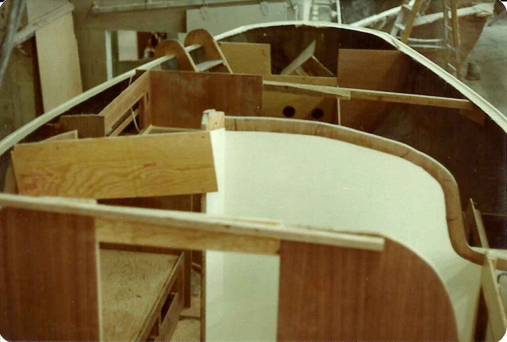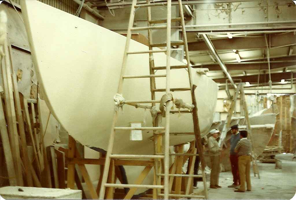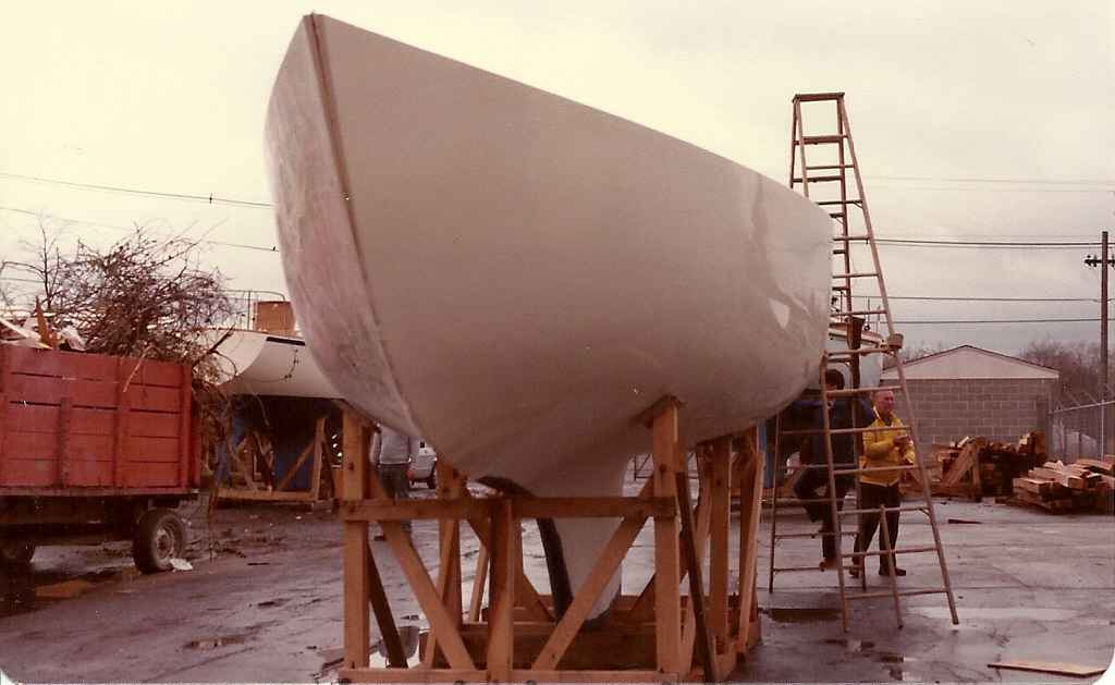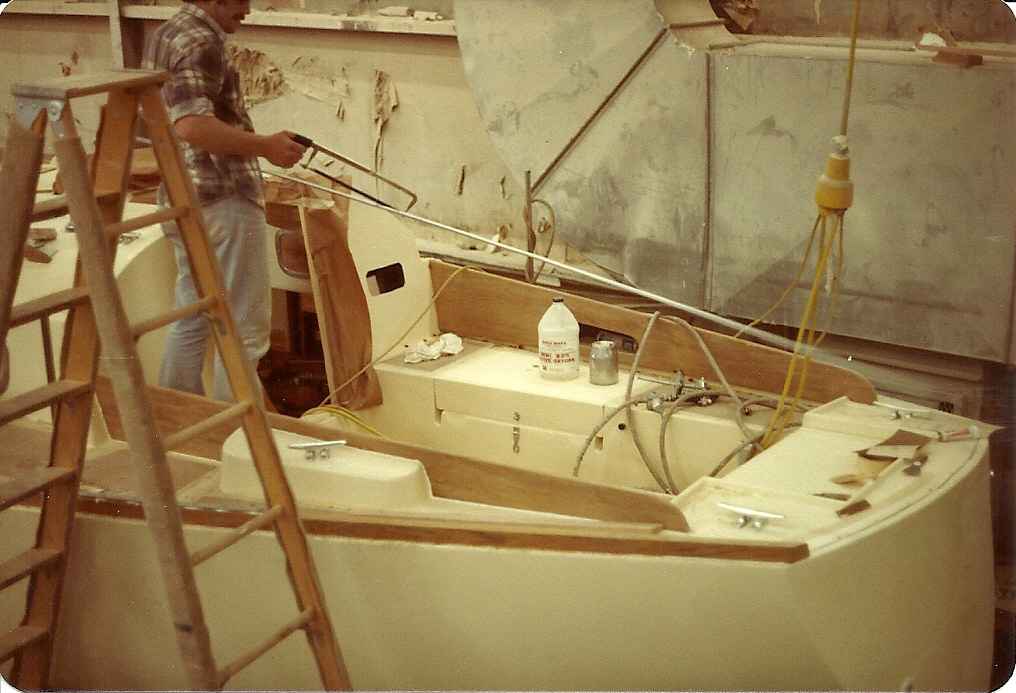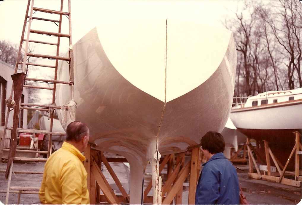 Our B29.9 was the last boat owned by the now defunct Bristol Yachts Company. She was taken back in trade just before they went bankrupt. We purchased her (as Gryphon IV) from Jan and Rob Fancher. They bought the boat from the liquidators in 1999. Although she had been on the hard for several seasons, the Fancher's brought this fine sailboat back to life, lavished her with TLC and made many upgrades. Shorthy after we bought Gryphon, we were delighted to hear from Pat and Mike Orsatti who saw our webpage. They were the boats original owner's! The Orsatti's enjoyed her (as Spirit) for 17 seasons from their home port in Stamford, Ct. She even made an extended trip to Maine one summer. In 1998, the Orsatti's traded Spirit back to Bristol Yachts and Clint Pearson. This was part of a deal for a new Bristol 38.8 (also to be named Spirit). The Orsatti's B38.8 was the final boat built by Bristol Yachts! Mike has very kindly shared these pictures taken of our B29.9 as she was being created. The Orsatti's had visited the Bristol yard on weekends to record progress. Having these photos is very special. A very nice surprise to get them. Thanks Pat and Mike!