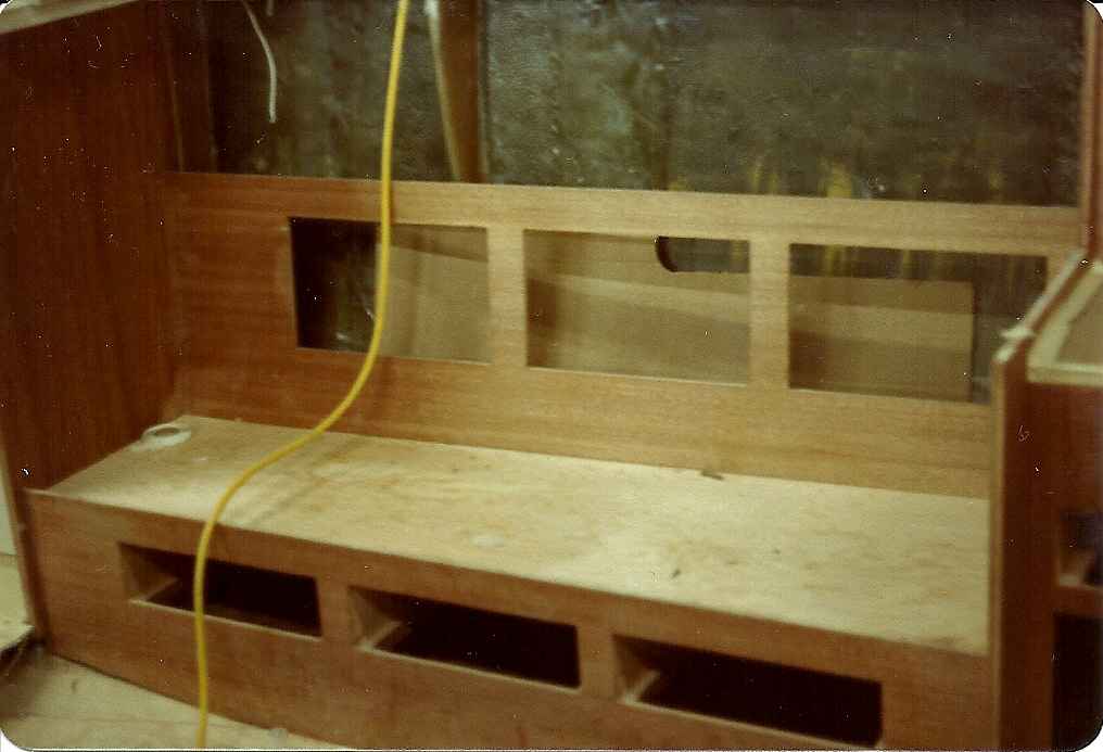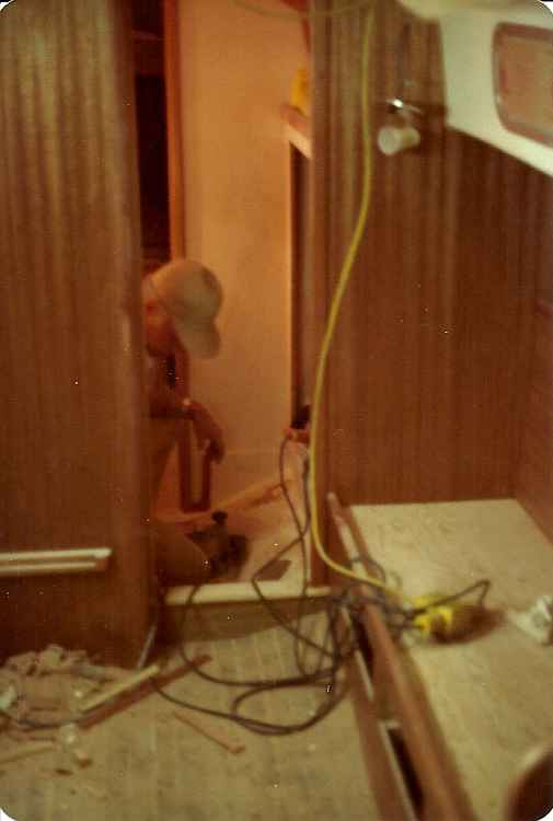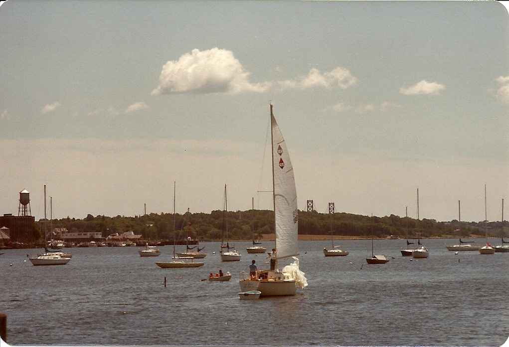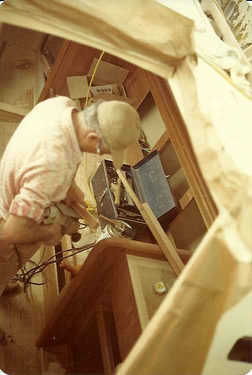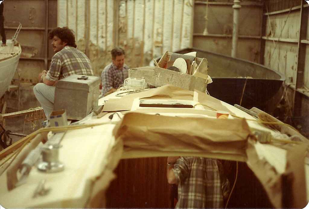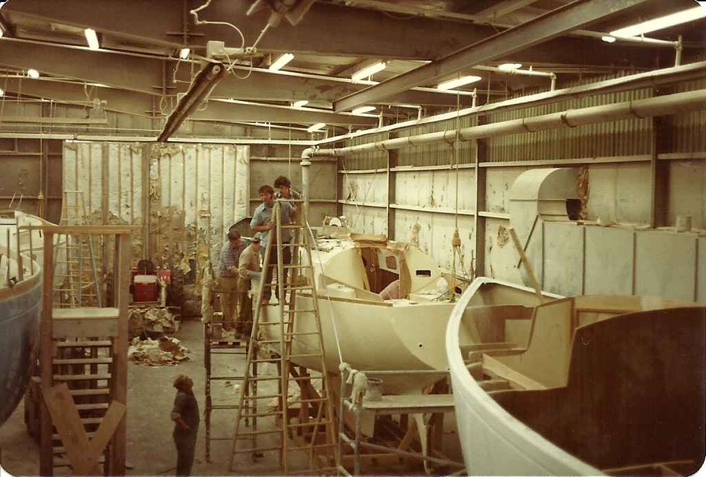 Our B29.9 was the last boat owned by the now defunct Bristol Yachts Company. She was taken back in trade just before they went bankrupt. We purchased her (as Gryphon IV) from Jan and Rob Fancher. They bought the boat from the liquidators in 1999. Although she had been on the hard for several seasons, the Fancher's brought this fine sailboat back to life, lavished her with TLC and made many upgrades. Shorthy after we bought Gryphon, we were delighted to hear from Pat and Mike Orsatti who saw our webpage. They were the boats original owner's! The Orsatti's enjoyed her (as Spirit) for 17 seasons from their home port in Stamford, Ct. She even made an extended trip to Maine one summer. In 1998, the Orsatti's traded Spirit back to Bristol Yachts and Clint Pearson. This was part of a deal for a new Bristol 38.8 (also to be named Spirit). The Orsatti's B38.8 was the final boat built by Bristol Yachts! Mike has very kindly shared these pictures taken of our B29.9 as she was being created. The Orsatti's had visited the Bristol yard on weekends to record progress. Having these photos is very special. A very nice surprise to get them. Thanks Pat and Mike!